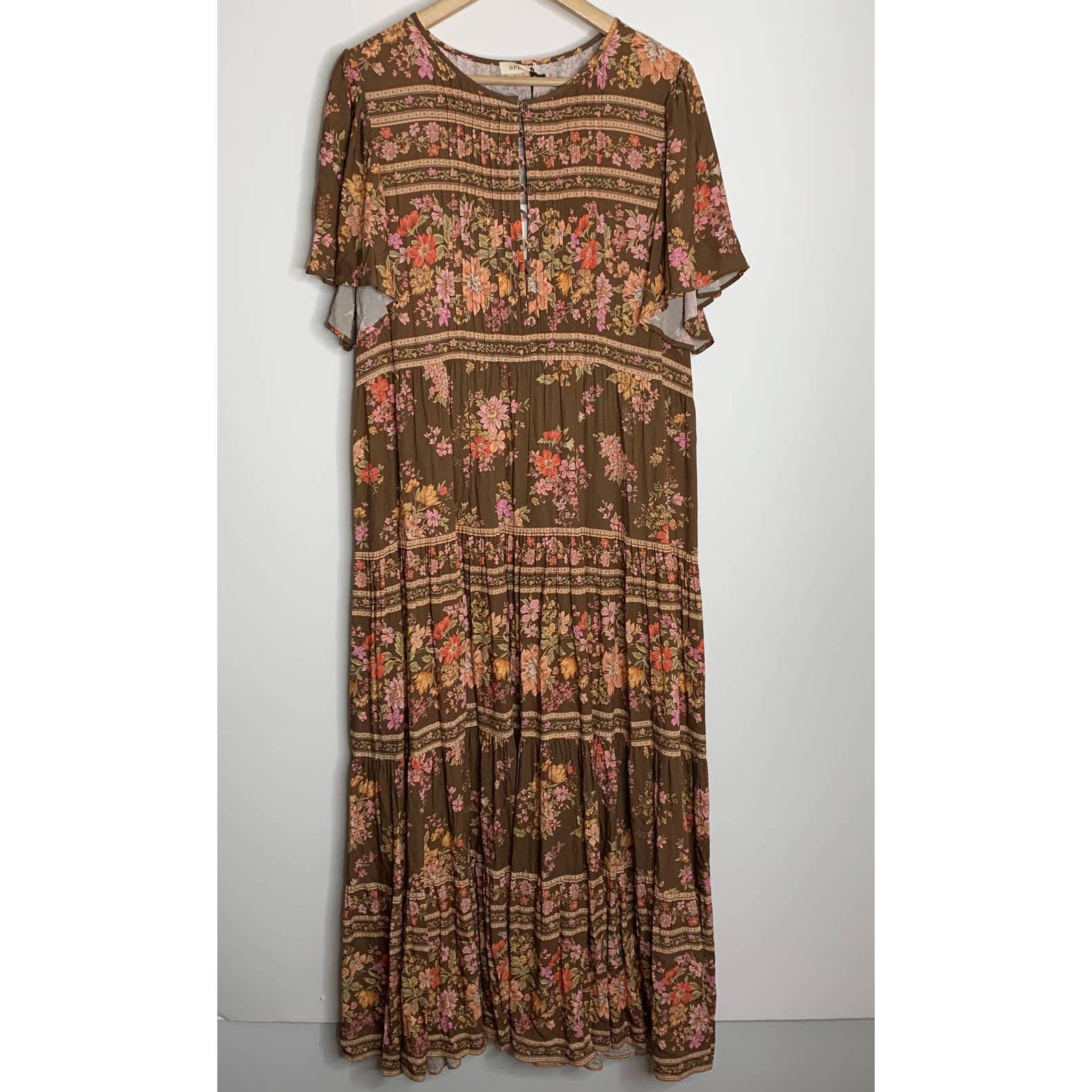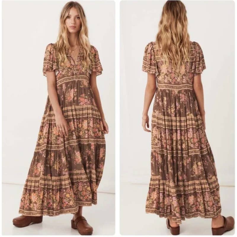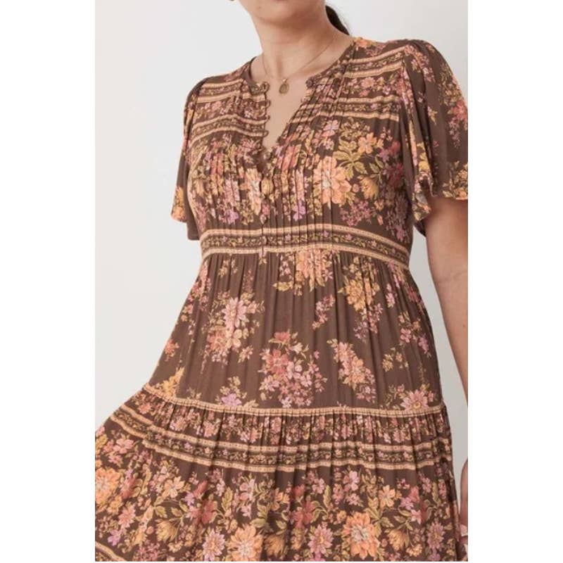 Spell & The Gypsy Collective Meadowland Flutter Sleeve Dress Hazelnut